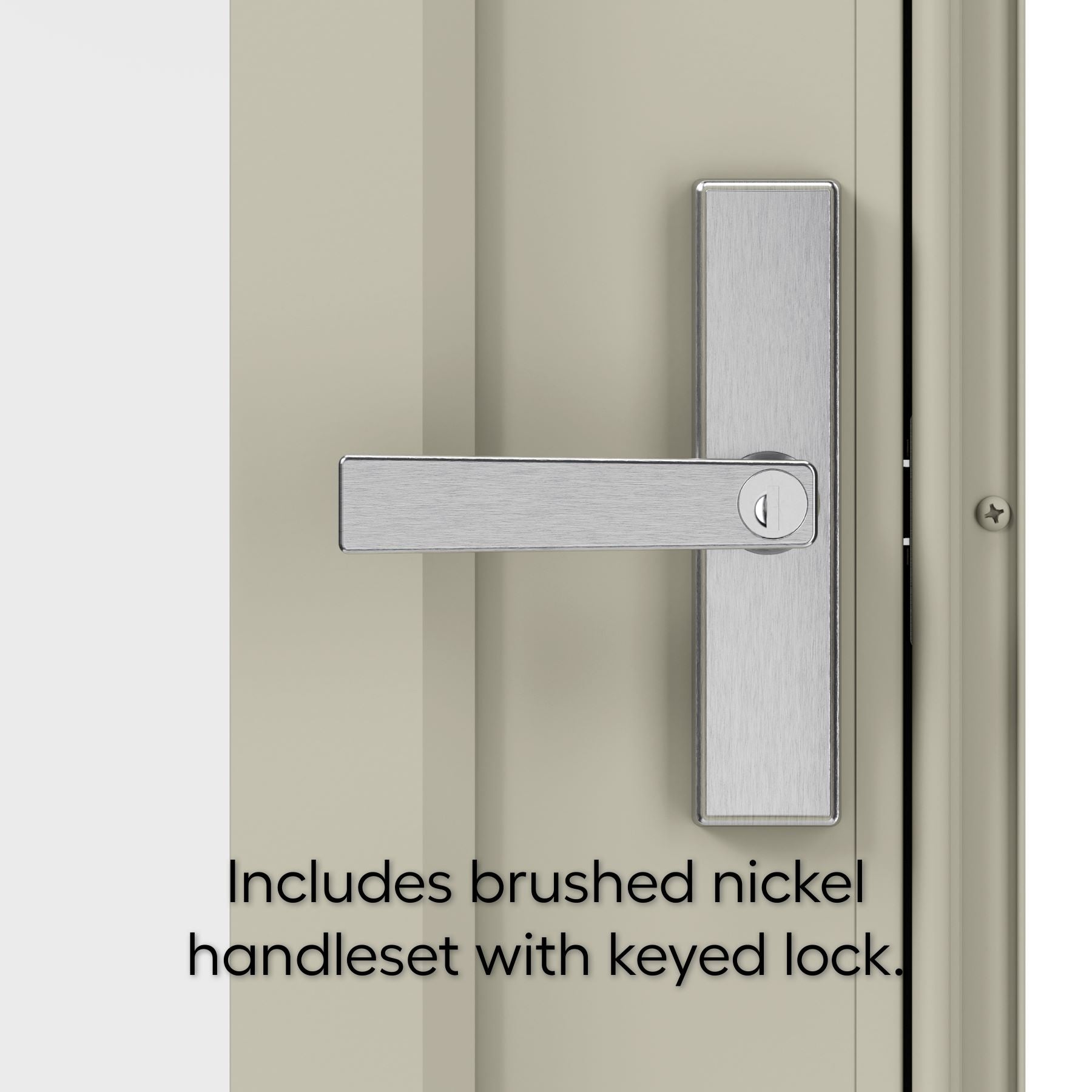 - Includes modern Secure Lock® handleset with a keyed lock.