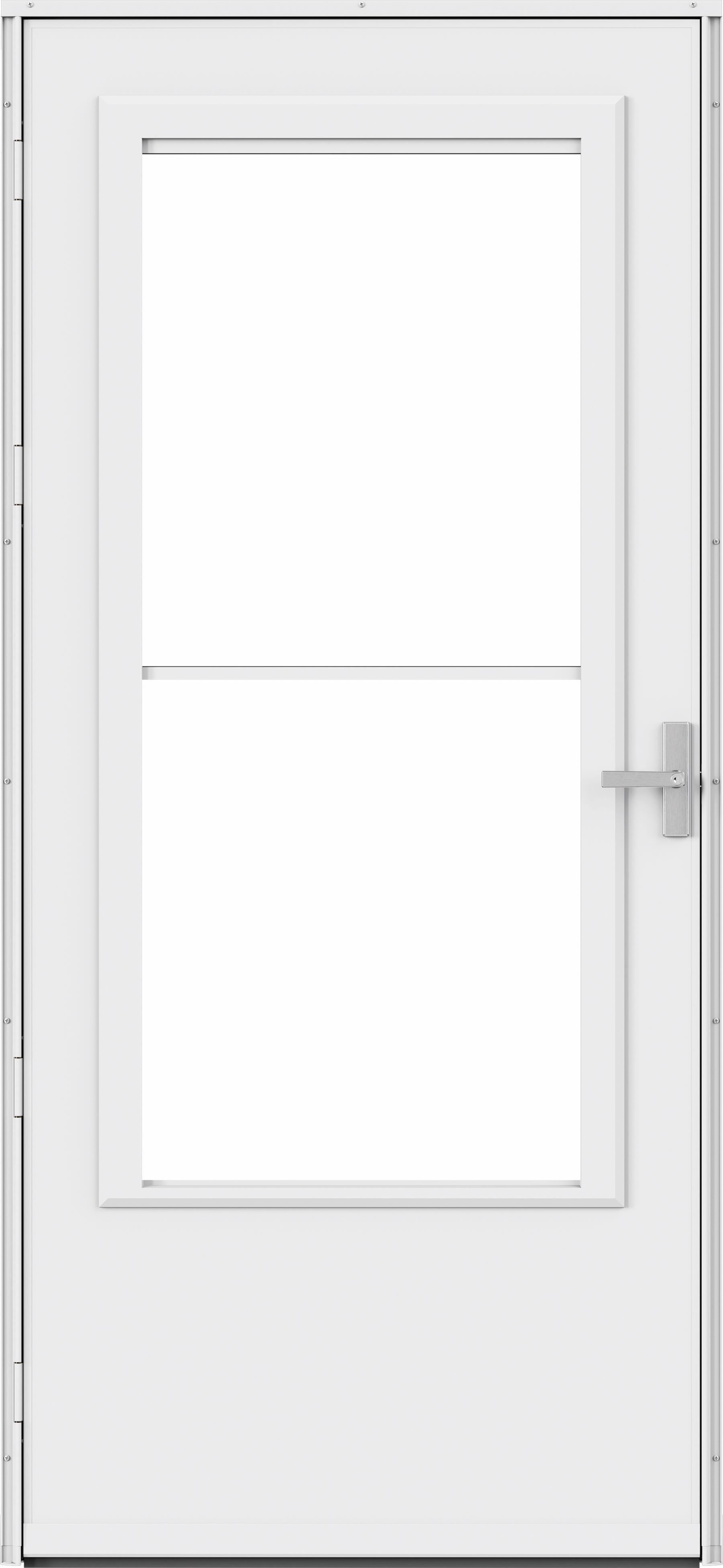 - Refreshed modern style. Complement the modern style of your home or entry door with the sleek, minimalist design of the door surface, flat window frame and included handleset.